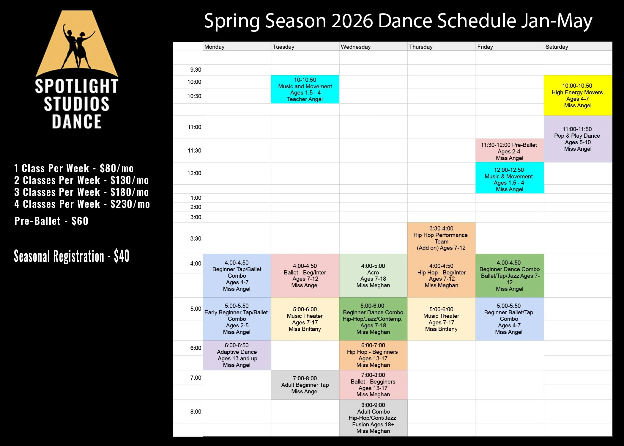 2026 Spring Dance Schedule